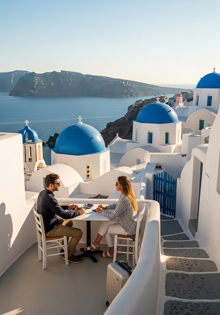 3. Santorini Caldera Suite — Blue Roofs and Golden Hour from Your Bed